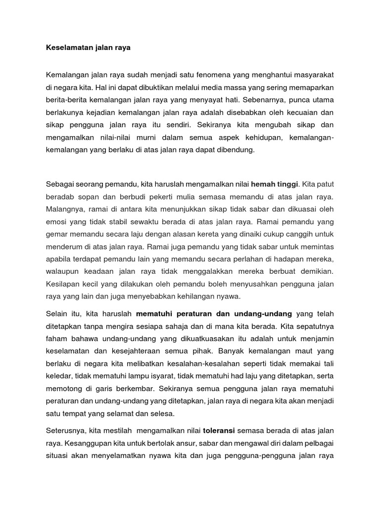 Biasanya jalan raya menjadi lebih bahaya ketika waktu. A Bila lintas jalanjangan main-main Punca utama berlakunya kemalangan U. Karangan pendek panduan keselamatan jalan raya.